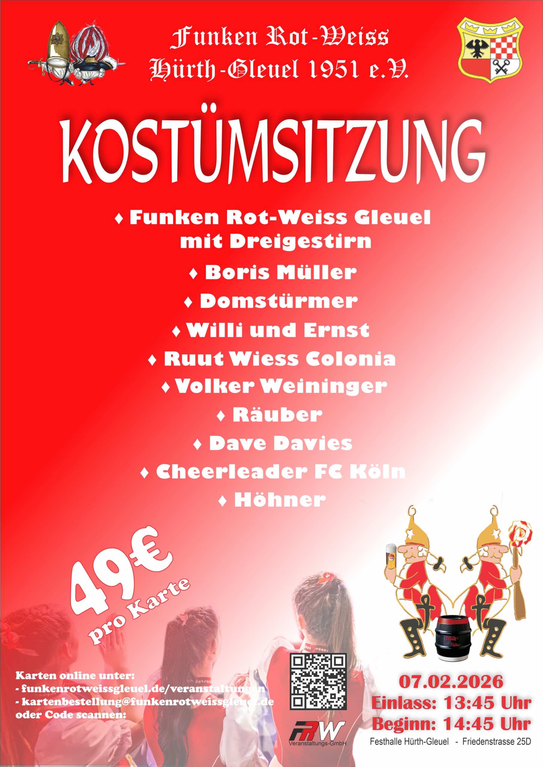 Mit einem Klick zu den aktuellsten Nachrichten der Funken Rot-Weiss Hürth-Gleuel 1951 e.V. auf Facebook oder neuesten Videos auf unserem YouTube-Kanal: